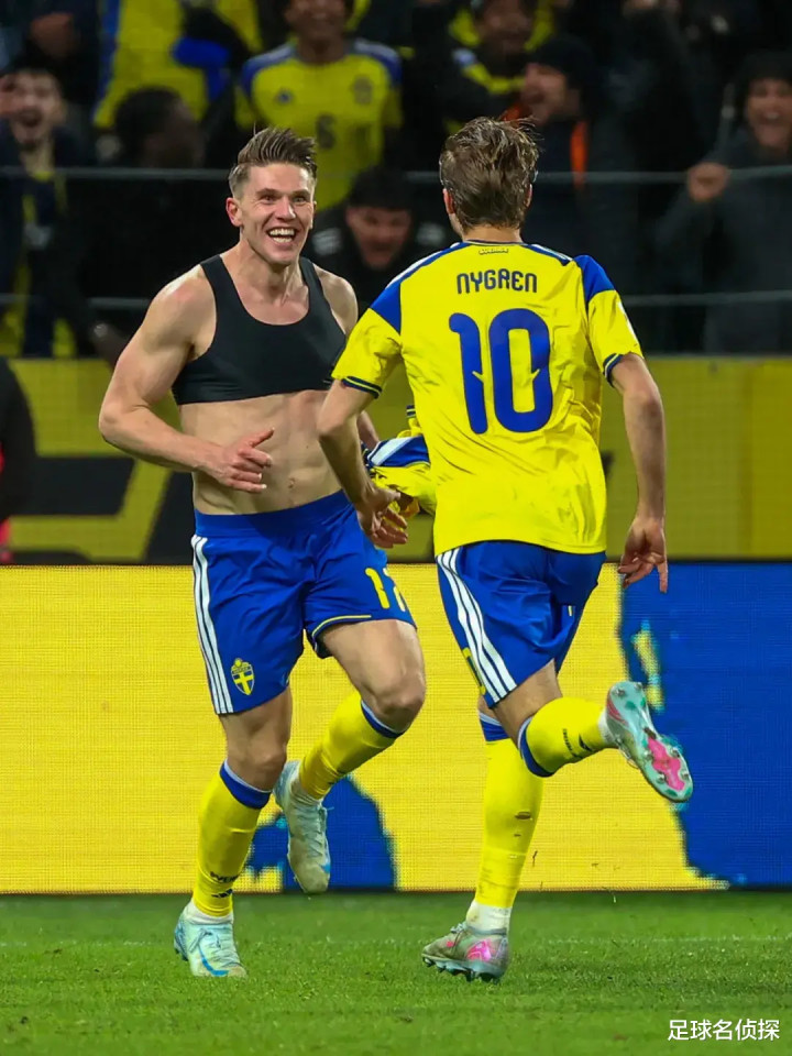 哲凯赖什2场附加赛打进4球,居功至伟!堪称是民族英雄!这球哲凯是门前机敏补射得手,进球后疯狂庆祝,可以说他几乎是一己之力把瑞典带进了世界杯,2场4球啊,还有个绝杀!