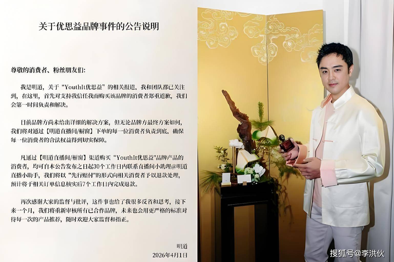 出事后,李若彤、明道、章小蕙、明道直接站出来道歉,承诺了优思益全额退款,只要是在他们直播间购买的产品,压根不推脱,申请售后就立刻全额负责。