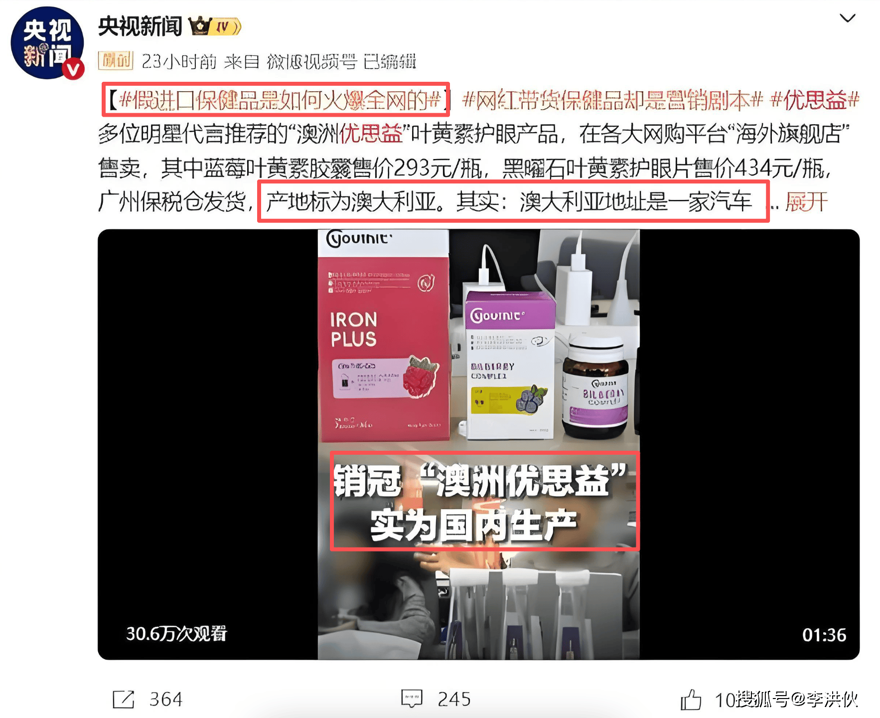 4·央视-《“澳洲优思益”被包装出来的销冠总台曝光“进口”保健品乱象》